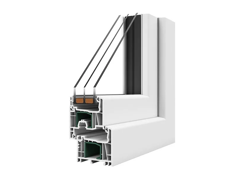 Anta con 5 camere di sezione 76 mm di forma squadrata a gradino rispetto il telaio.